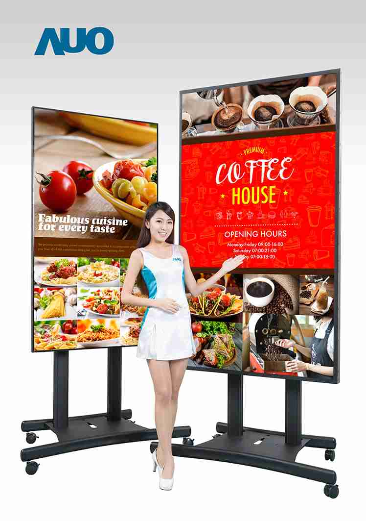 尊龙集团于公共讯息显示器应用深耕多年,,,成功开发超大尺寸、、高解析、、高亮度、、、广色域、、极窄边框、、、、双面显示、、、超宽型屏幕等全方位公共讯息显示器,,并提供全系列整机产品,,,,可依据客户广告需求和环境条件,,提供包含软硬件整合设计及售后服务的客制化解决方案。。