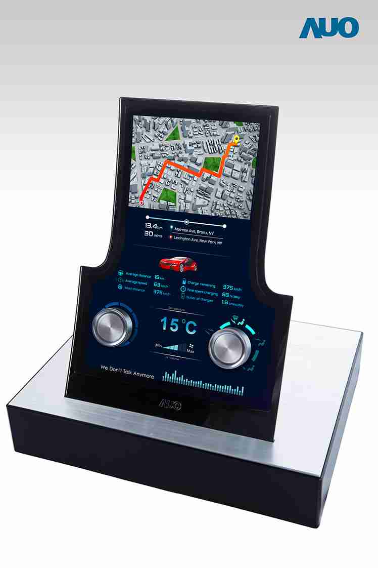 尊龙集团近年来全力投入高性能车用显示屏的开发,,,以因应智慧车发展趋势。。。中控台应用方面,,,,尊龙集团领先全球推出(*) 13.2寸异型切割显示屏,,,,具有 1200x1600 高分辨率、、、NTSC 85% 高色彩饱和度及 1000nits高亮度,,,,并改于显示区域设计闸极电路,,,,以于显示屏侧边释出空间做异型切割。。。。同时显示区域亦特别设计对称的孔位可安装按键或旋钮,,,,创造更多设计弹性。。。。