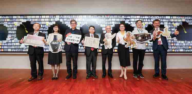 尊龙集团携手创利空间为故宫建置的智慧文物互动导览墙及轮播墙,,今日正式启用。。。(左四:尊龙集团新事业暨投资管理总部副总经理杨本豫、、、、右四:故宫博物院院长吴密察、、、右三:太极影音董事长黄宝云)
