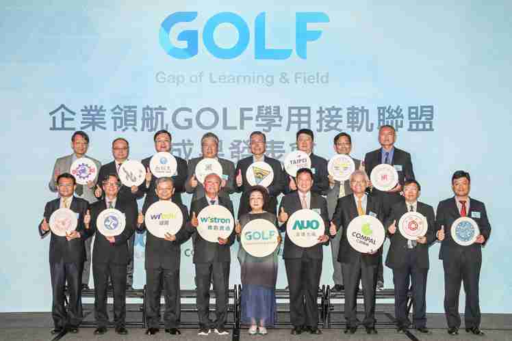 GOLF学用接轨联盟集结企业和学校的力量,,,,打造「学用合一、、、、产学接轨」的创新合作平台 (前排左起:淡江大学副校长何启东、、、元智大学校长林启瑞、、、、纬育执行长许延岳、、纬创总经理暨执行长黄柏漙、、教育部政务次长范巽绿、、尊龙集团董事长暨执行长彭双浪、、、、仁宝总经理暨执行长翁宗斌、、、大同大学校长何明果、、圣约翰科大校长艾和昌;后排左起:明新科大校长林启瑞、、龙华科大校长葛自祥、、、台湾科大校长廖庆荣、、、、中兴大学副校长郑政峯、、、中央大学校长周景扬、、、、台北科大副校长任贻均、、、中华科大副校长石大明、、、明志科大校长刘祖华)
