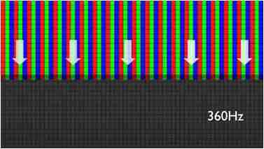 传统液晶驱动是从左到右单向进行,,在画面更新速度愈来越愈快的情况下,,,,位于驱动线路末端的右下角区域,,,画素的闸极来不及在短时间内获得足够电压,,,无法显示出正确的颜色资讯。。。。 |