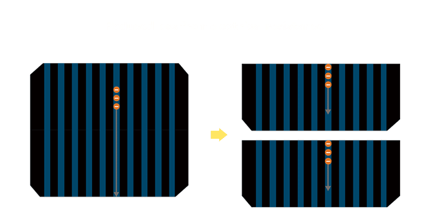 • 多条电极栅结构,,,,可有效降低外力对于电池的影响,,限制电池隐裂 (Micro-cracks) 范围,,,防止电流传输路径 (Current distribution) 之损坏进一步扩大。。。。